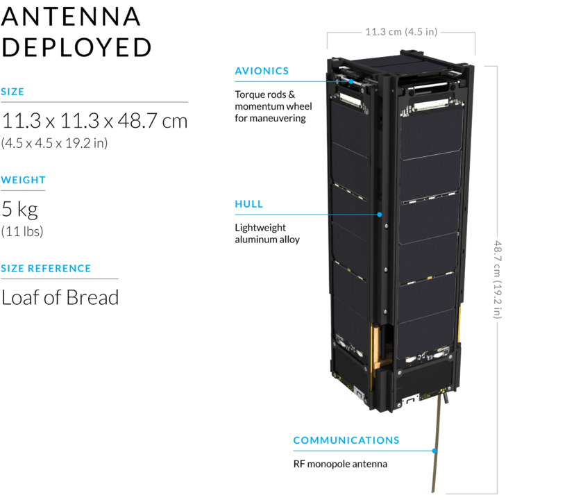 Questi mini satelliti hanno forma cubica, con un volume inferiore al decimetro cubo, e peso inferiore a 1.3 chili.