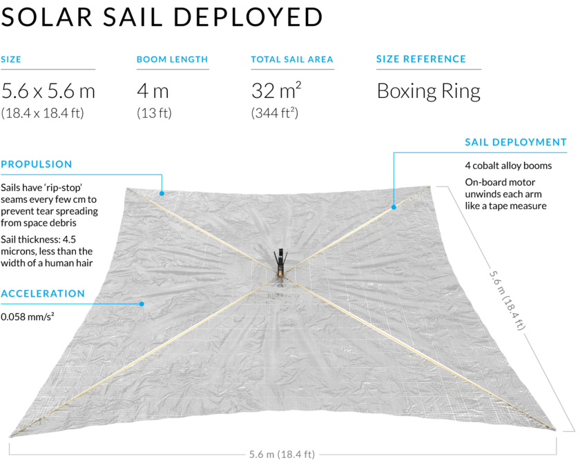 Seguì LightSail 1 nel 2015: la missione fu un successo e durò appena una settimana. La differenza, rispetto alla precedente fu l’utilizzo di un CubeSat.